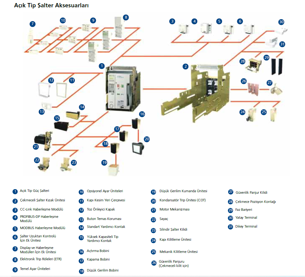AE1000 – 3200-SW 3P Çekmeceli Tip Şalter İçin Aşağıdaki Şekilde Aksesuar Eklenmelidir; | ||||||||||||||
