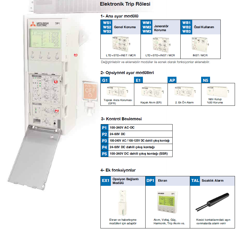 *Genel koruma amaçlı Temel Ayar Ünitesi şaltere dahil edilmelidir. (WS1-W veya WS2-W veya WS3-W | ||||||||||||||